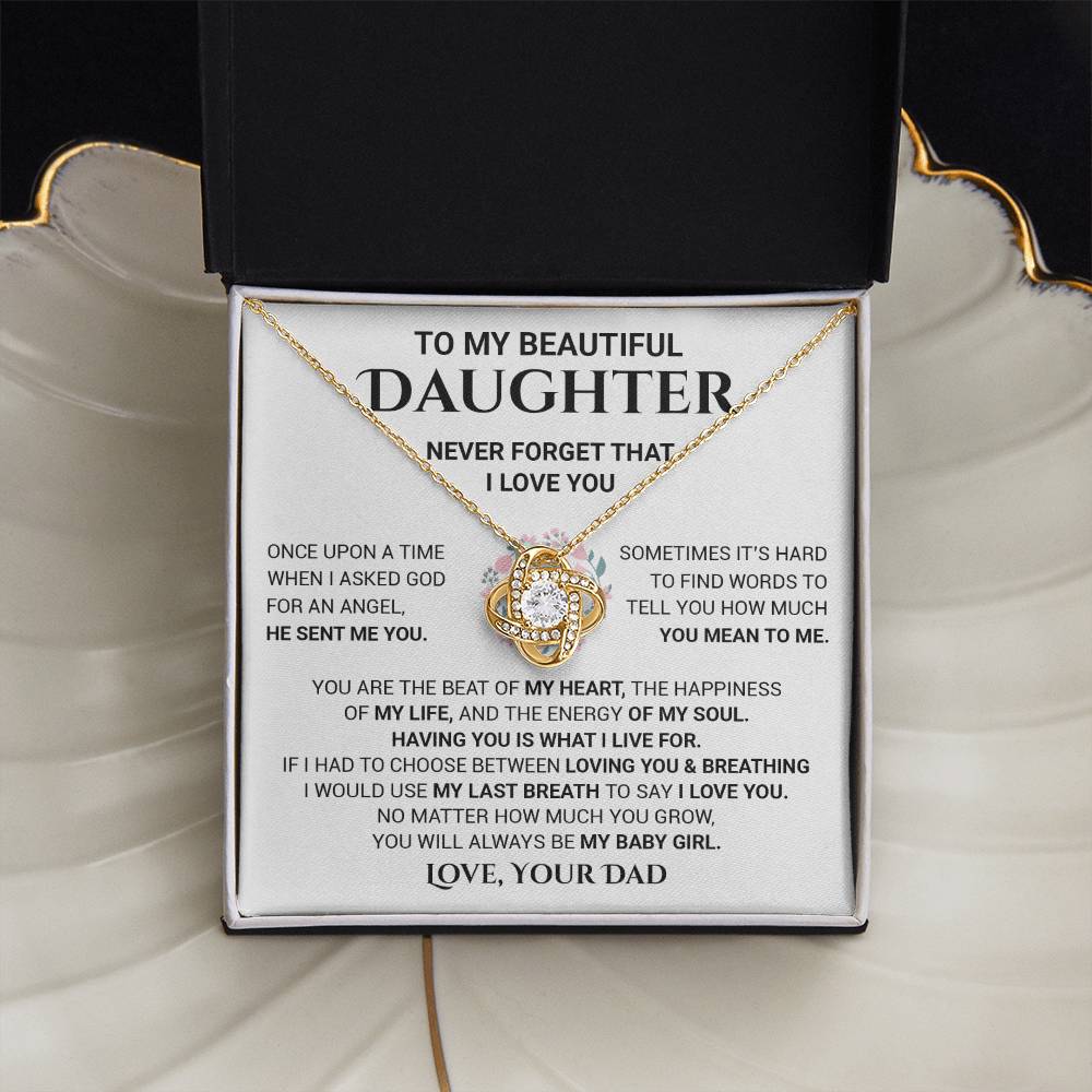 Love Knot Necklace, Beautiful Daughter My Heart My Life My Love, Special Gift For Daughter From Dad