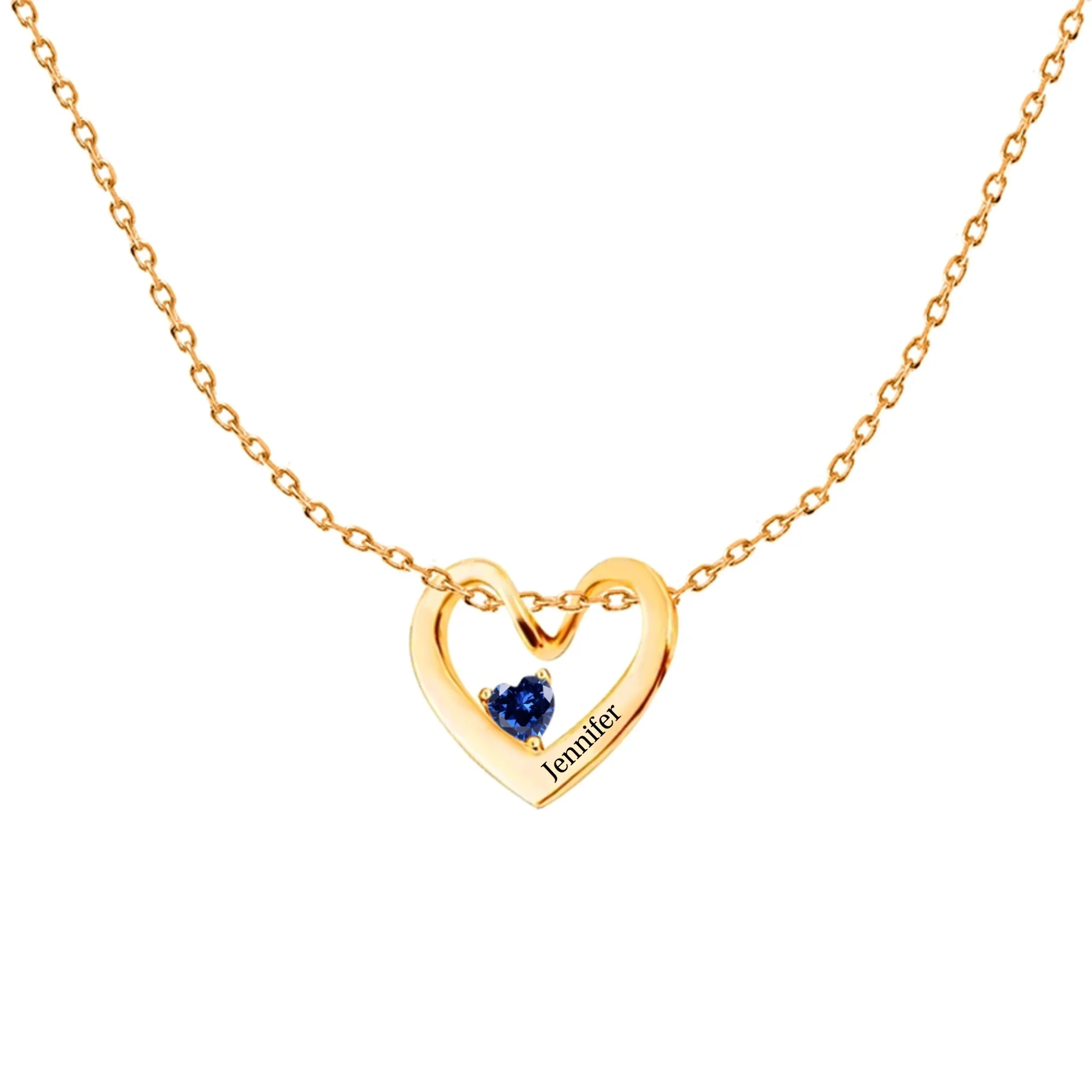 Personalized Heart Name Birthstone Necklace For Mom Grandma